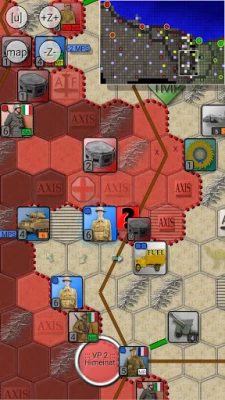 + Settings: Various options are available to alter the look of the gaming experience: Change difficulty level, hexagon size, Animation speed, choose icon set for units (NATO or REAL) and cities (Round, Shield, Square, block of houses), decide what is drawn on the map, and much more.
