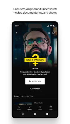The DailyWire+ App is the streaming home of The Daily Wire, Ben Shapiro, Jordan Peterson, Matt Walsh, DailyWire+ Movies, and PragerU. We fight for what we believe in. We have fun doing it, and we make it entertaining. Download DailyWire+ to access top news, commentary, investigative journalism, podcasts, movies, documentaries, original series, and more.
