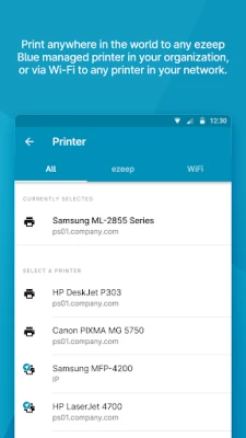 A cloud printing app that makes printing easy for individuals, businesses, and organizations of any size: ezeep Blue lets you print documents from your Android phone or tablet to any printer in your Wi-Fi network or any printer you add for your organization to the ezeep Admin Portal – true mobile printing.
